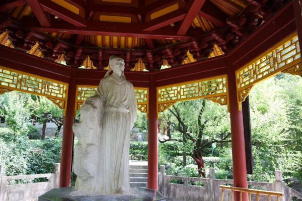 在甘肃省陇南市成县杜甫草堂景区拍摄的杜甫雕像。新华社记者陈斌摄