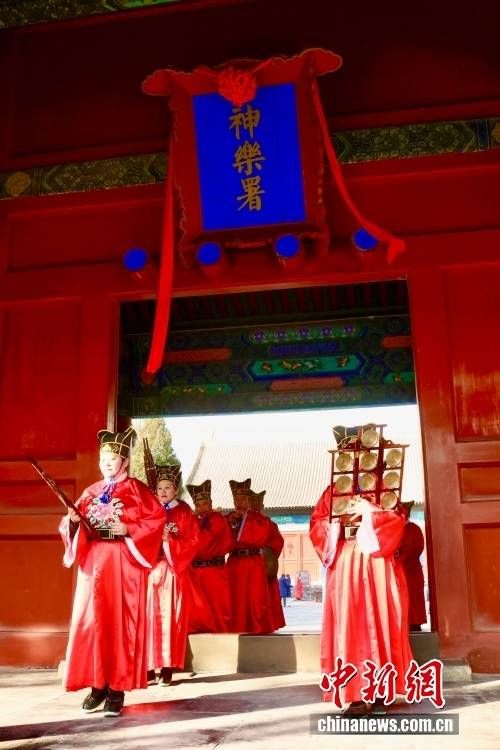 2月9日,天坛公园神乐署开放暨中和韶乐展览开幕式在北京举行。据悉,历经修缮和展陈提升,北京天坛神乐署院落将于10日对公众重新开放。天坛公园在神乐署布设“天坛神乐署中和韶乐展”,以1500平方米展览空间展示礼乐文化。中和韶乐是明清两朝用于祭祀天地、祖先等重大国事活动的专用礼仪性音乐,贯穿整个典仪过程,融礼、乐、歌、舞为一体,是中国雅乐传统的重要组成部分。天坛神乐署始建于明永乐十八年(1420年),是明清两代演习祭祀礼乐的核心场所。作为天坛五组建筑群之一,神乐署承载着中华礼乐的千年文脉。图为中和韶乐演出。中新社记者 易海菲 摄