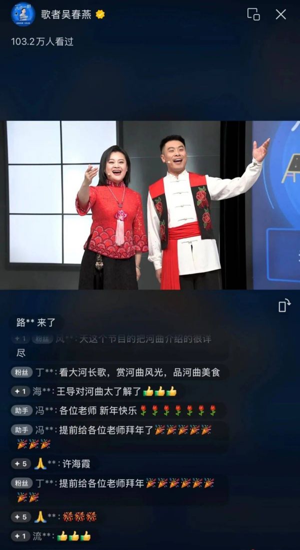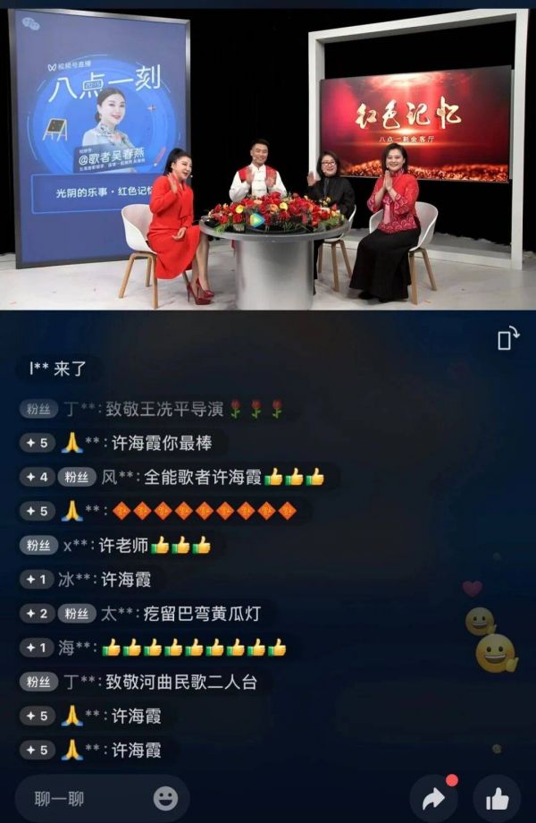2月6日晚8时15分,一场以“非遗在舞台‘活’起来”为主题的艺术对话在线上热烈展开。著名导演王冼平携大型非遗音乐剧《 大河长歌》的主演——河曲女高音歌唱家许海霞与河曲民歌传承人邬光,做客《红色记忆》栏目直播间,与女高音歌唱家、国家一级演员吴春燕共话艺术传承。直播通过腾讯视频及“歌者吴春燕”视频号同步播出,吸引近200万观众在线观看,引发热烈反响。