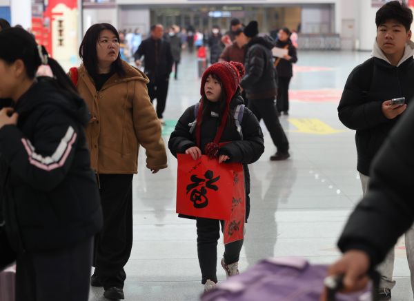 北京丰台站地区的“送福区”同样十分热闹。来自丰台区书法家协会的书法家们现场铺纸研墨,为旅客送上象征着美好新春祝福的春联、福字,伴随赠送的还有新春福袋。“上火车前领到福字和春联,惊喜又感动,很有温度,我回家就贴上!”刚刚拿到春联和福字的旅客张先生,小心地吹着未干的墨迹,脸上满是笑意。