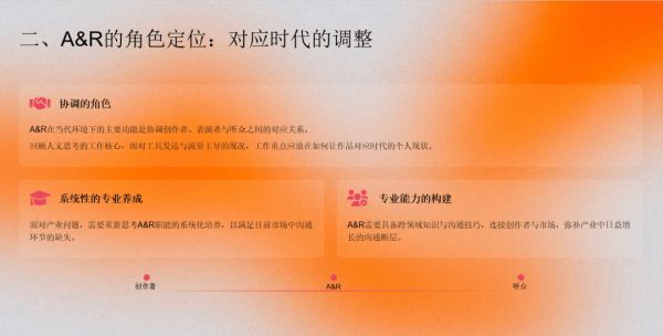 目前为止,所有这些现象,这又回到了我刚刚提到的A&R角色。如今的A&R已经远不只是音乐制作层面的沟通,它更包括与媒体沟通、与创作者沟通、与表演者沟通、与平台沟通,甚至与投资者、金主沟通。它正在变成一个连接一切的中枢。