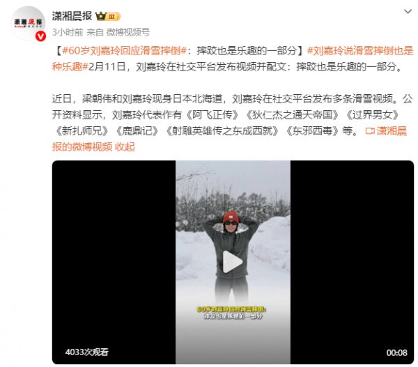 2月11日,60岁的刘嘉玲在社交平台分享视频,并配文表示:“摔跤也是乐趣的一部分。”近日,梁朝伟与刘嘉玲一同现身日本北海道,刘嘉玲也在社交平台更新了多条滑雪相关视频。