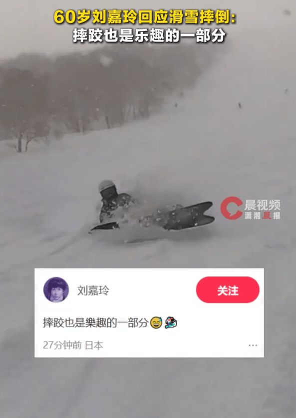 60岁刘嘉玲回应滑雪摔倒:摔跤也是乐趣的一部分