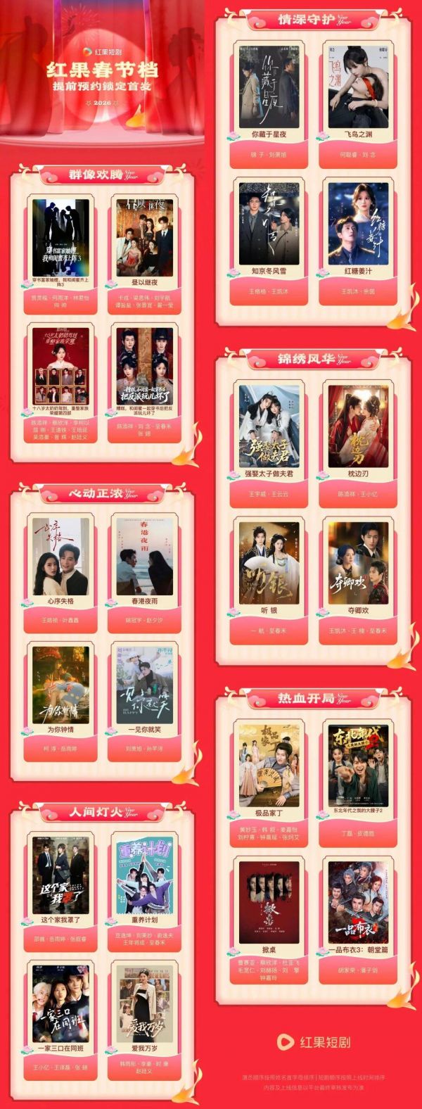 随着红果、快手星芒先后公布2026年春节档短剧片单,短剧赛道正式进入一年中最重要的节点型竞争周期。