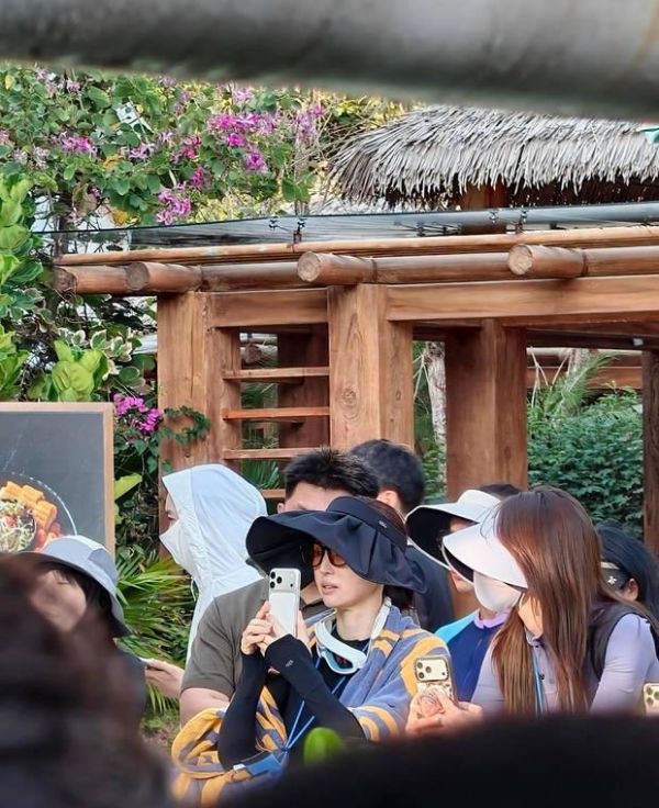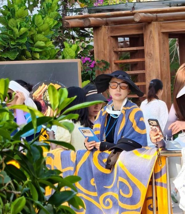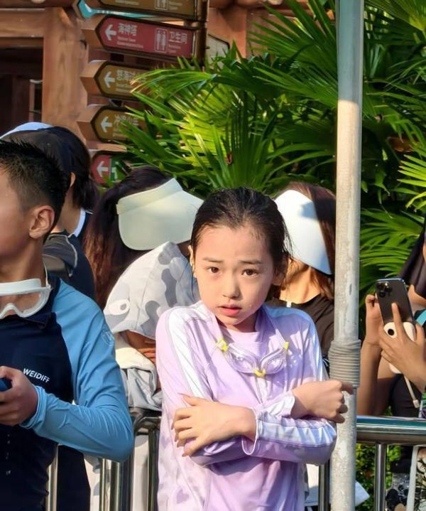 董璇与小酒窝、张维伊刚玩完水,都披着毯子保暖。