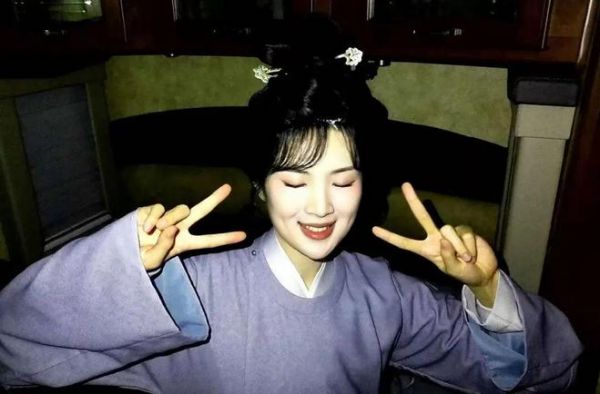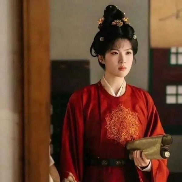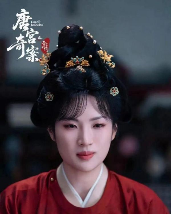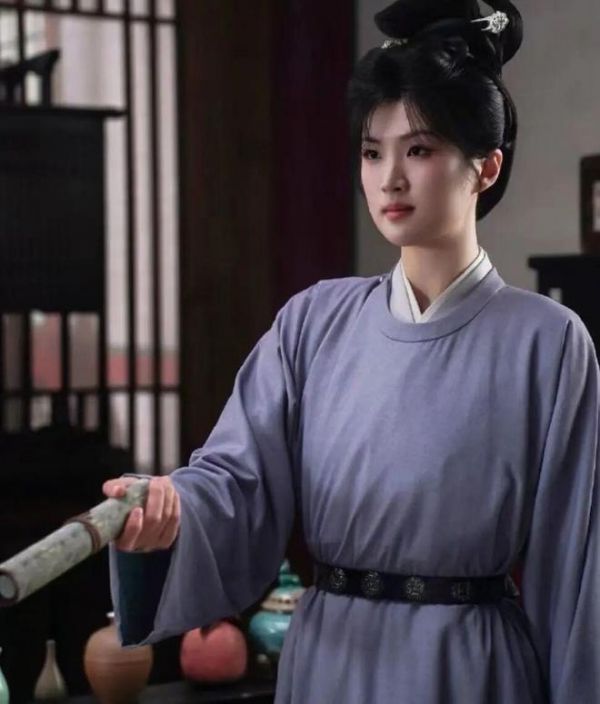 没有华丽妆造,露面晚,一身素色唐袍、简约发髻,初看清淡,越看越有唐风风骨。