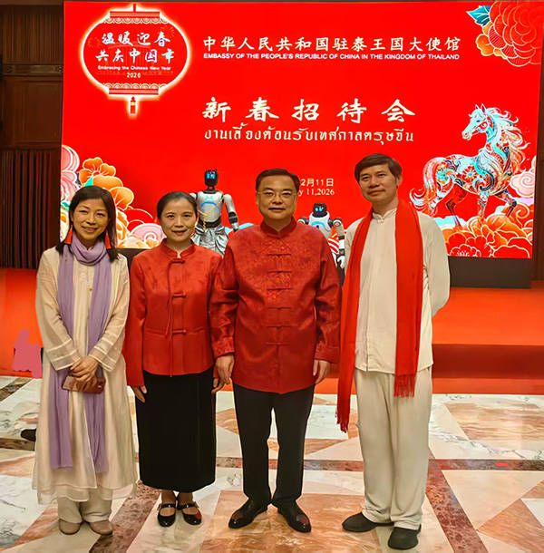 当地时间2月11日10时30分,在中国驻泰国大使馆,泰国总理阿努廷携夫人塔娜侬女士率代表团,应中国驻泰国特命全权大使张建卫邀请,出席在中华人民共和国泰王国大使馆举行的新春招待会。知名书画家聂晖应邀参加,其书画作品被总理阿努廷收藏。