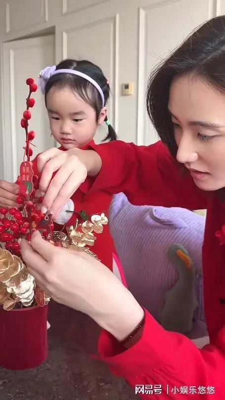 海哈金喜晒新年仪式感!穿红衣和女儿一起布置家,3岁夏夏好能干