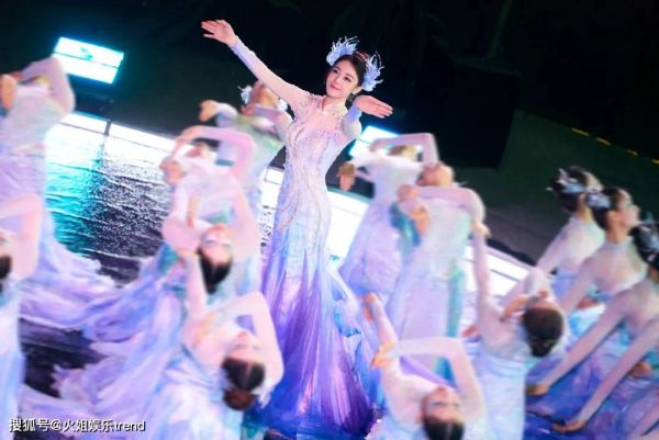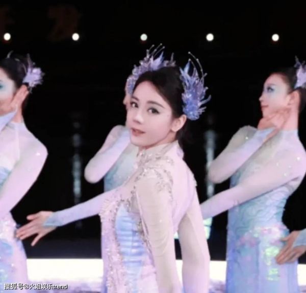 迪丽热巴作为领舞,身着流光溢彩的礼服,舞姿优雅灵动。