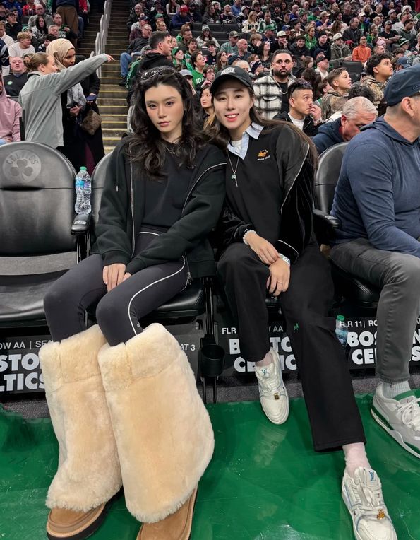 奚梦瑶还晒出了她和小姑子何超欣一起看球赛时拍的合影,两人并排而坐,一起摆出pose拍照。虽然两人是姑嫂关系,但是在很多网友眼里看来,她们俩更像是好友一样。
