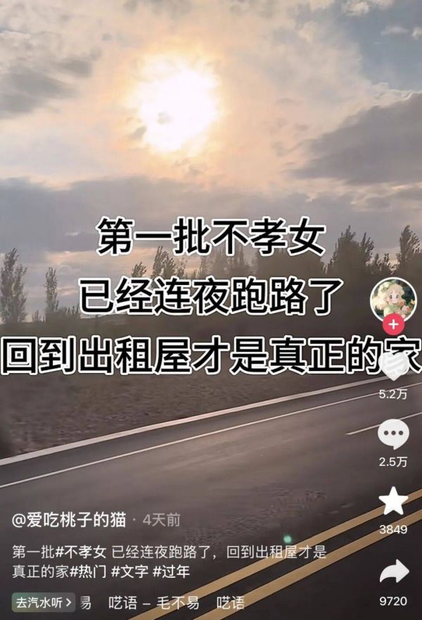 与此同时,春节临近的城市街头虽人流如常,却少了置办年货的热闹与归家的烟火气,传统团圆氛围被“极简过年”“错峰返乡”冲淡。更具传播性的,是“第一批不孝子逃离老家”“父母最大的成功是孩子愿意回家过年”等话题冲上热搜。