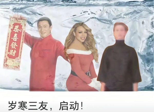 每逢圣诞和过年,刘德华、玛丽亚·凯莉(牛姐)、尼禄就会成为中外人民庆祝佳节的吉祥物,他们也被亲切地称为岁寒三友。