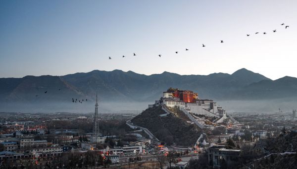 这是2月18日拍摄的新年晨光中的布达拉宫。 新华社记者 丁增尼达 摄