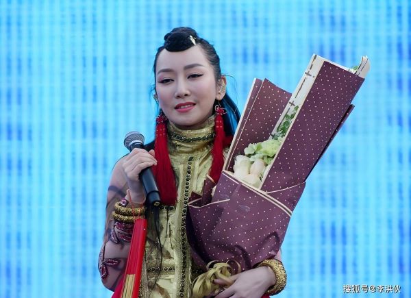 紧接着,第一句“白云苍苍,踩着风扶摇直上”就飘出来了,声音还是一如既往的空灵、清晰,从音响里传得老远。这时候萨顶顶还完全沉浸在自己的表演里,嘴唇动得那叫一个标准,跟音响里的歌声完美同步,一点破绽都没有。