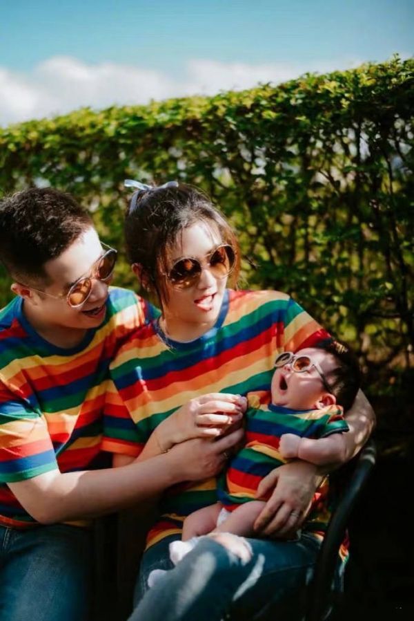 一家三口也经常外出旅行度假,他们会穿整整齐齐的亲子装,在人群里好惹眼。看小腰果的长相,应该会更像爸爸。