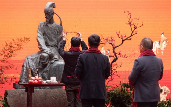 这是2月23日拍摄的丙午马年“人日游草堂”祭拜诗圣仪式。 新华社记者 江宏景 摄