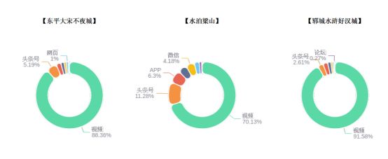 在分析的时间段内,“东平大宋不夜城”方案相关信息量达19140条,略超“水泊梁山”的18771条,近乎“郓城水浒好汉城”9970条的两倍。这些数据有力彰显了东平、梁山对景区宣传的积极投入,海量信息源自主流媒体报道、游客打卡分享、达人直播推介等,共同织就了一个多元且生动的信息生态网络。