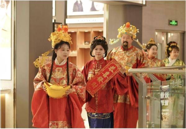 这支身着明代形制汉服的巡游队伍,以财神为核心元素,将传统民俗与国风美学完美融合,用沉浸式体验为市民游客送上新春的美好祝福,让年味在欢声笑语中愈发浓郁,也让中华优秀传统文化在新时代的商业场景中焕发新的生机与光彩。