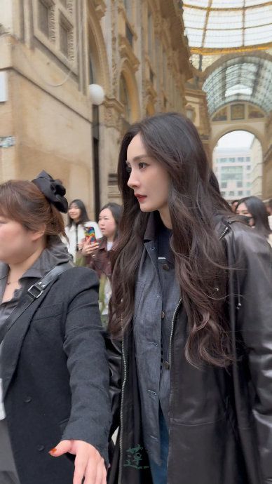 杨幂米兰探店路透,好小的脸好清晰的美貌