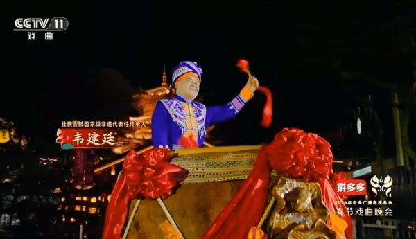 国家级会鼓非遗传承人 韦建廷:我非常激动,有生之年还能参加这样的重大活动,我非常高兴。在条件有点冷的时候,我还是坚持过来了,还是跟大家是一样的把节目搞好。