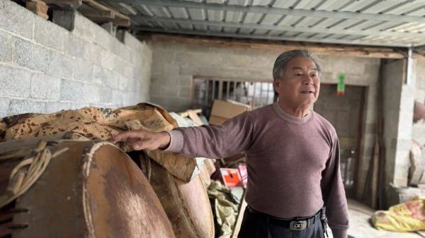 73岁的国家级会鼓非遗传承人韦建廷与马山会鼓的缘分,一牵就是60余载。9岁学打鼓,10岁尝试制鼓,16岁便开始帮村里修整、制作会鼓,如今的他,经手制作的会鼓已有600余面,大大小小的鼓从幼儿园传到大学校园,从乡村巷陌传到艺术殿堂,这位73岁的老人,不仅是会鼓制作的行家里手,更是马山会鼓最坚定的传承者。