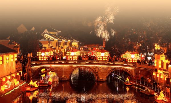 春晚的热度迅速传导至取景地——三河古镇。这座拥有2500多年历史的皖中水乡,在丙午新春以“千鱼跃三河”为主题,将春晚舞台上的盛景搬进市井烟火。夜幕降临,近3000盏鱼灯沿街高悬,从万年台到三县桥,从古城墙到望月阁,处处流光溢彩。