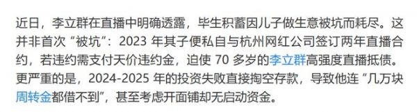 首先,李立群在视频中称自己现在,手头极度拮据,日常开销需精打细算,急需用钱时向熟人借钱,结果好多的年的朋友,居然没一个出手帮忙的