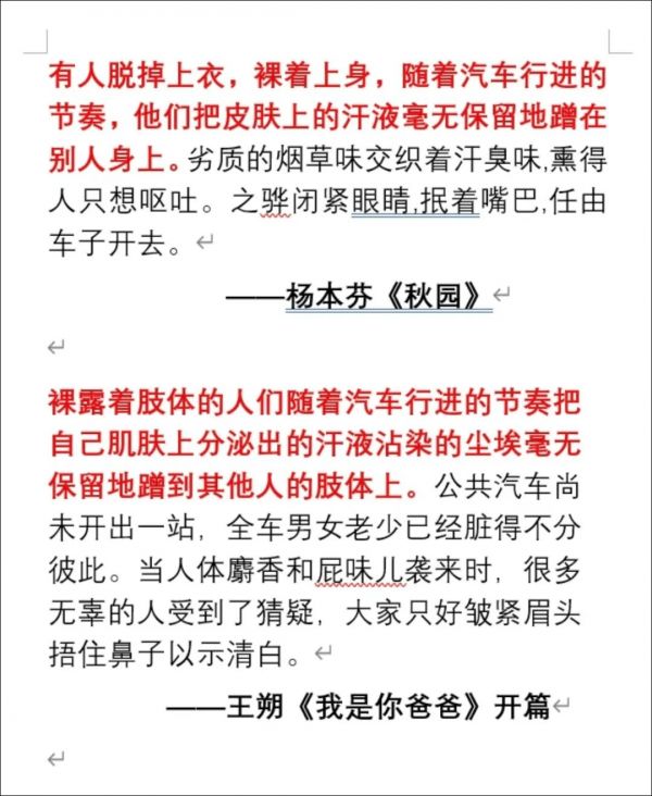 近日,知名“鉴抄”博主“抒情的森林”发布的对比图中,杨本芬最为“出圈”的代表作《秋园》与王朔《我是你爸爸》有部分段落的高度重合;代表作之一的《浮木》与约翰·格里森姆的《超级说客》有部分段落相似;《豆子芝麻茶》更是与知名作家余华的《在细雨中呼喊》以及霍达的《穆斯林的葬礼》都有多处语句相似。