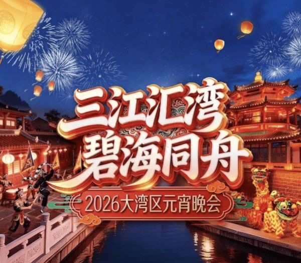 《三江汇湾·碧海同舟——2026大湾区元宵晚会》3月3日19:30分播出。晚会以“潮起新程”“奋楫扬帆”“踏浪弄潮”三大篇章,将千年古城、非遗瑰宝、侨乡情缘与湾区奋进精神交织共鸣。