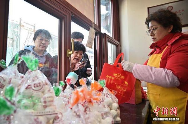 3月3日,山西太原老字号“老鼠窟元宵”吸引众多民众购买。中新社记者 韦亮 摄