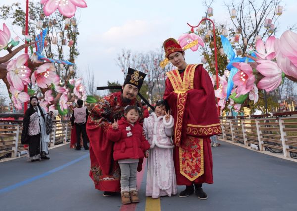 游园过程中,不少游客发现,园区内多了不少身着特色装扮的NPC,他们随机出现在灯组旁、步道间,化身元宵“欢乐使者”,与游客近距离开展猜灯谜互动。“一口咬掉牛尾巴,打一字”“元宵前后共团圆,打一字”,趣味灯谜涵盖字谜、成语、民俗等多种类型,既有传统韵味又贴合节日氛围。李白对诗、月神邀舞、财神快问快答等多样NPC互动玩法遍布全园,游客参与即可解锁惊喜好礼,欢乐氛围一路拉满。