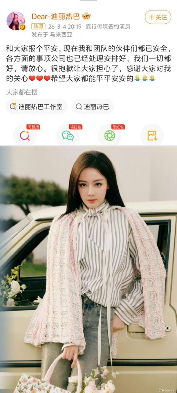 迪丽热巴发文报平安,IP定位马来西亚,工作室失职引争议