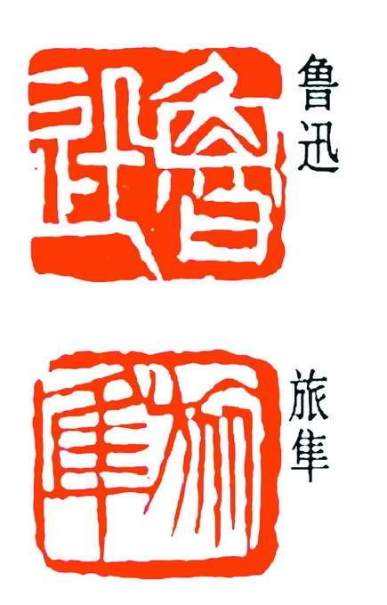 刘淑度与郑振铎的夫人高君箴是大学同窗兼闺蜜,郑振铎因此转请她为鲁迅治印。刘淑度精心篆刻了两枚印章:白文“鲁迅”和朱文“旅隼”(上海鲁迅纪念馆藏),拿给老师过目。齐白石“对‘鲁迅’这方章比较满意,说刻得好,对‘旅隼’的‘旅’字,他说安排得不好。当时老师用手指着,边说边勾画的情形,现在还想象得出”(刘淑度《我与篆刻》)。然而,鲁迅却非常喜爱这两方印,在题书《芥子园画谱三集》赠许广平时,即钤此两印;杂文集《准风月谈》出版时,又将“旅隼”印设计在封面上,并经常将这两印钤在题诗或藏书上。