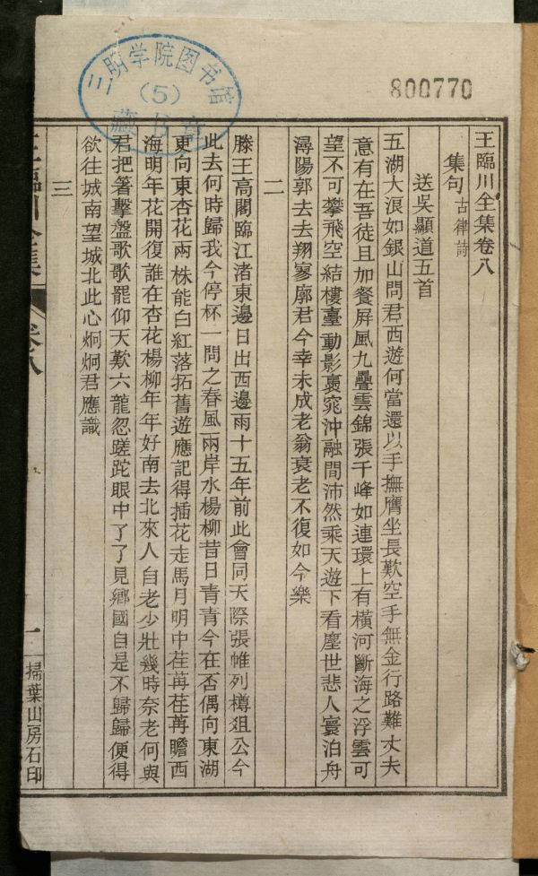导语:《王临川全集》一百卷,书中钤有“福建师范学校图书印”“三明学院图书馆藏书章”,现藏于三明学院“闽师之源”文献室,展现了三明学院悠久的馆藏源流和深厚的文化积淀。