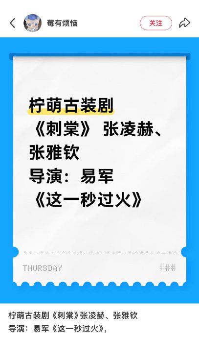 #网传张凌赫张雅钦主演刺棠#张凌赫现在接戏都开始搭这种没听过的女主了?《这一秒过火》导演+古言复仇,这配置怎么样 有人看好吗?我总觉得这俩搭一起有点违和…