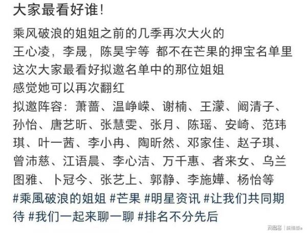 网传浪姐4最终嘉宾阵容……
