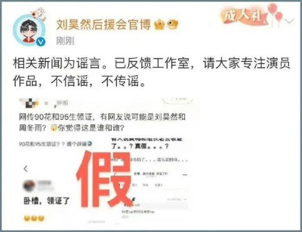 周冬雨和刘昊然突然被曝领证,后援会官博发声明否认