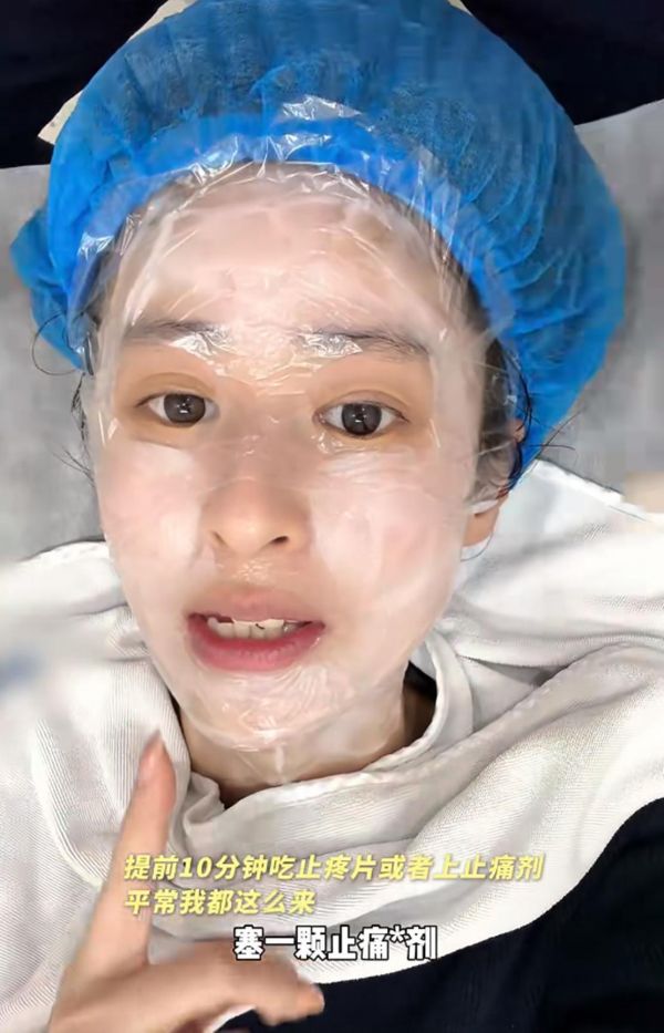 即便颖儿做了不少减少疼痛的准备,不过,在做热玛吉过程中,颖儿还是疼得失去表情管理。下图中,躺在床上的颖儿神情显得非常痛苦和紧张,她双眼紧闭,眉头紧锁,面部肌肉因疼痛而扭曲,难以忍受疼痛的她时不时还发出呼喊。