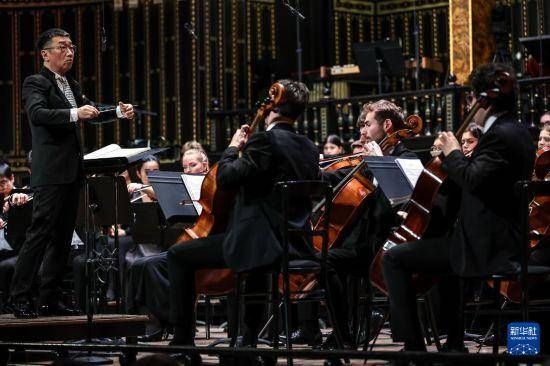 3月25日,在匈牙利布达佩斯,中国音乐学院院长李心草在中匈友好交流音乐上指挥。新华社发(鲍洛格·达维德摄)