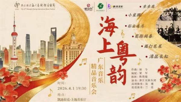 2026年4月1日晚,上海音乐厅将迎来一场别具意义的音乐会——《海上粤韵—广东音乐精品音乐会》。作为第41届“上海之春”国际音乐节的重要演出,本场音乐会由浙江民族乐团倾情演绎,不仅重温《步步高》《彩云追月》等深植于国人记忆的百年经典,更将演奏由著名作曲家吴颂今全新创作的20首广东音乐作品,展现传统乐种在新时代的勃勃生机。