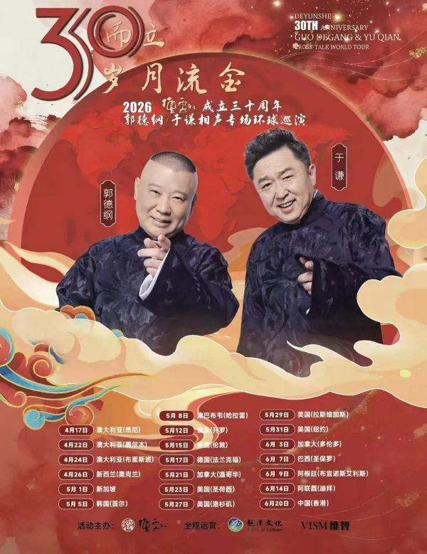 郭德纲官宣德云社海外巡演!成立30年,感谢所有衣食父母的支持