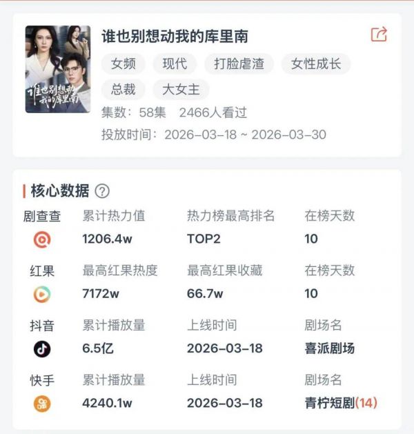 预算的增加源自于对内容的自信。李佳佳透露,刚刚好一直是靠收费与免费双端收入。最近一部爆款短剧《谁也别想动我的库里南》充值额超过三千万,红果最高热度也超过7000万。