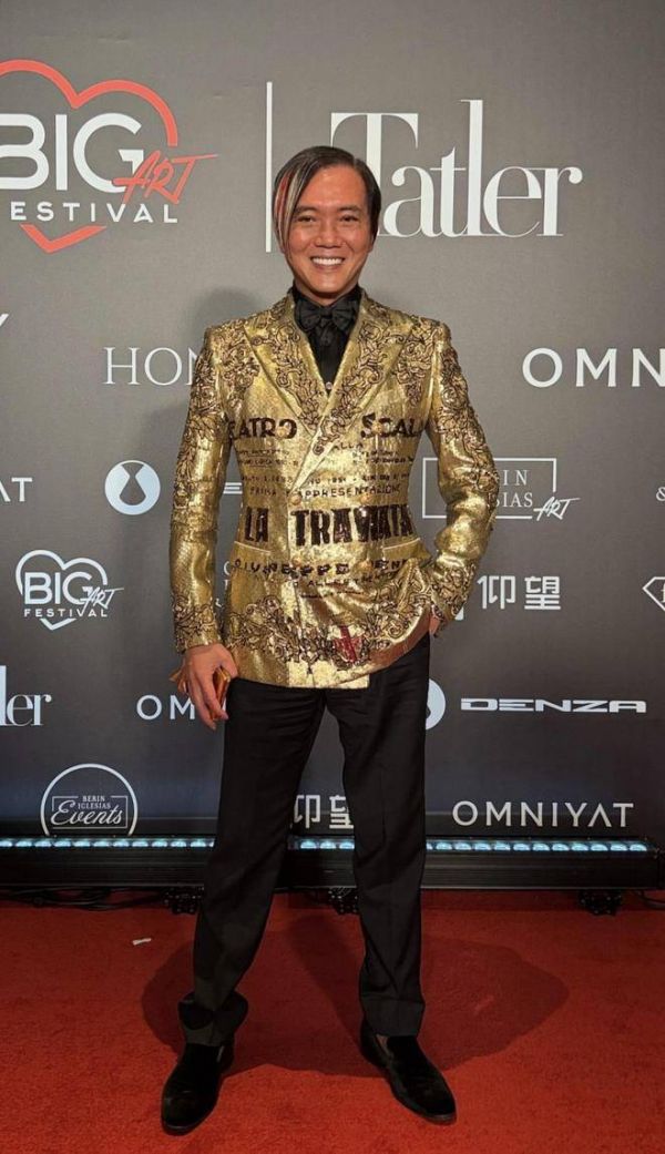 洪永时向来热衷于社交场合,晚宴对于他来说,不仅仅是走红毯、秀造型的时刻,更是与各界艺术大师交流的好机会。现场的许多国际知名艺术家,包括日本的村上隆等,都在场,而洪永时此时则积极与这些艺术界的大咖互动,合影留念。至于他的妻子,她则静静地坐在宴会一旁,享受着艺术表演,两人各自忙碌,却依旧非常和谐。