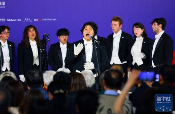 3月31日,美国耶鲁大学威芬普夫斯阿卡贝拉合唱团在北京开展文化交流活动,现场演绎多首经典歌曲,以音乐为纽带,传递友谊。