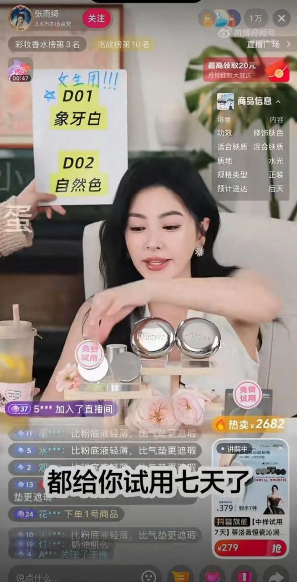 张雨绮在推广产品时,反复强调有“7天试用期”和“运费险”保障,试用不满意可退货,但部分用户既不付款也不试用,仅持续质疑或观望。