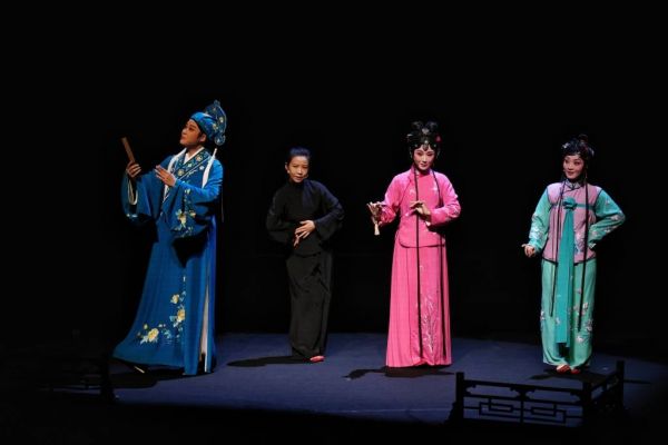 四位演员并不扮演特定角色,而是跳进跳出、角色轮换。诸如旦行的曾静萍同时也会挑战生、丑等行当角色,而林苍晓和李辉逸虽然本行是生和净,但会演绎剧中的女性角色。每位演员都以情绪切换、声线调控,将《陈三五娘》中不同角色塑造得栩栩如生。