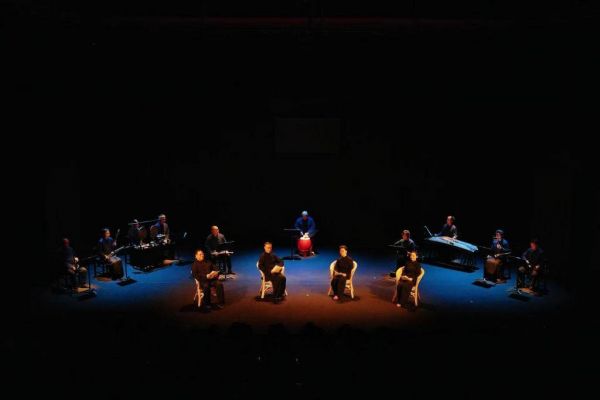 这是一场别具一格的“精粹读剧”。虽名“读剧”,但舞台上却乐队齐备,四位演员坐在舞台中央,素装登台。他们以“坐唱”“坐演”的方式,完成了这部伴随他们艺术生涯一生的经典剧目。