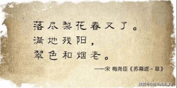 再接着,“落尽梨花春又了。满地残阳,翠色和烟老”。这下阕的“老”,和上阕的“嫩”,形成鲜明的对比。“曲水漂香去不归,梨花落尽成秋苑”,很显然,诗人延用了李贺的灵感,并加以改造,李贺写尽了梨花落尽的凄凉,而诗人则写梨花落尽后,春天也随之远去的遗憾。春光易逝,人生易老,以景结情。诗人以迷离的语调,突出了暮色中的春景,以春草之有情,写时光之无情,大有苍凉凄迷的意境。这两句,成了写春草的千古名句。
