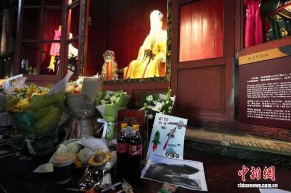 4月4日,清明节前一天,成都武侯祠博物馆内的惠陵(刘备陵墓)及诸葛亮殿迎来大量游客。人们自发在惠陵与诸葛亮殿前献花,表达对先贤的追思与敬意。图为游客在诸葛亮殿里献上的祭品。中新社记者 安源 摄