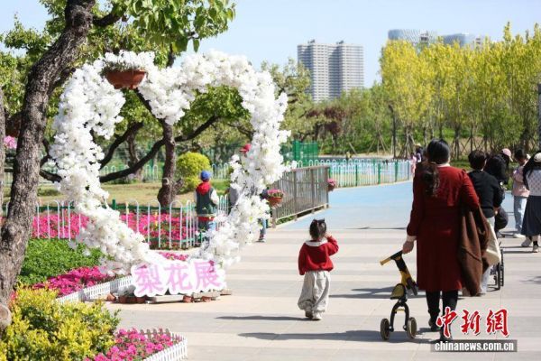 4月4日,清明假期首日,市民走进河南郑州世纪公园踏青赏景。图为市民漫步公园。中新社记者 刘鹏 摄
